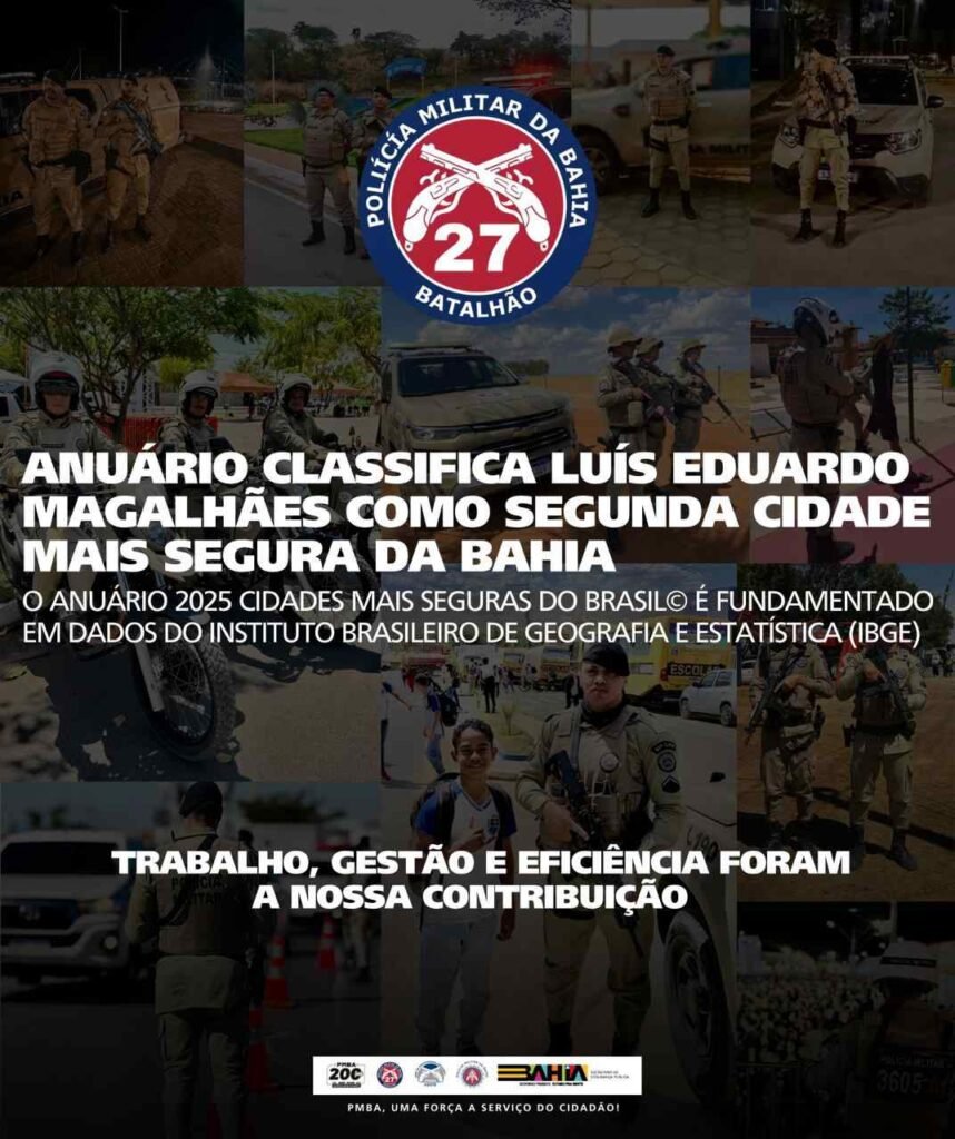 O município de Luís Eduardo Magalhães, no oeste baiano, consolidou sua posição como um polo de desenvolvimento e qualidade de vida ao ser classificado como a segunda cidade mais segura da Bahia para se viver de acordo com o Anuário 2024 Cidades Mais Seguras do Brasil da plataforma MySide, o que reflete o sucesso das ações de segurança pública e, em particular, da atuação estratégica e integrada da então 85ª Companhia Independente de Polícia Militar, hoje 27º Batalhão de Polícia Militar.
