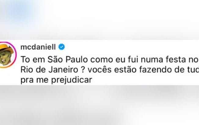 MC Daniel utilizou suas redes sociais neste domingo (13) para desmentir os rumores de que teria participado da festa de aniversário de Vini Jr., realizada no Rio de Janeiro, poucas horas após o anúncio do fim de seu relacionamento com a influenciadora Lorena Maria.
