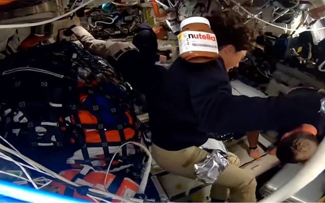 Nutella flutua dentro da cápsula Orion durante a missão Artemis II, em ambiente de microgravidade, onde a ausência de peso faz com que objetos permaneçam suspensos no interior da naveReprodução/Nasa