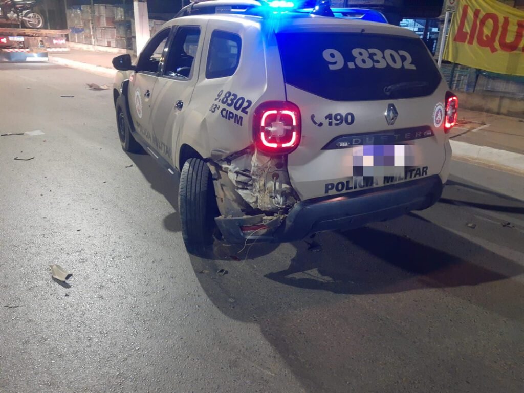 Na madrugada deste domingo (31), por volta das 5h29, um acidente de trânsito envolvendo uma viatura da Polícia Militar e um automóvel de passeio foi registrado na Avenida Antônio Carlos Magalhães, no bairro Jardim Ouro Branco, em Barreiras.