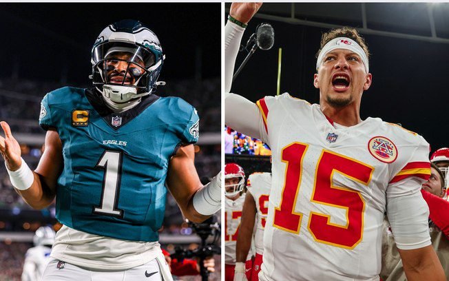Jalen Hurts e Patrick Mahomes são os quarterbacks e protagonistas da partidaPhiladelphia Eagles e Kansas City Chiefs