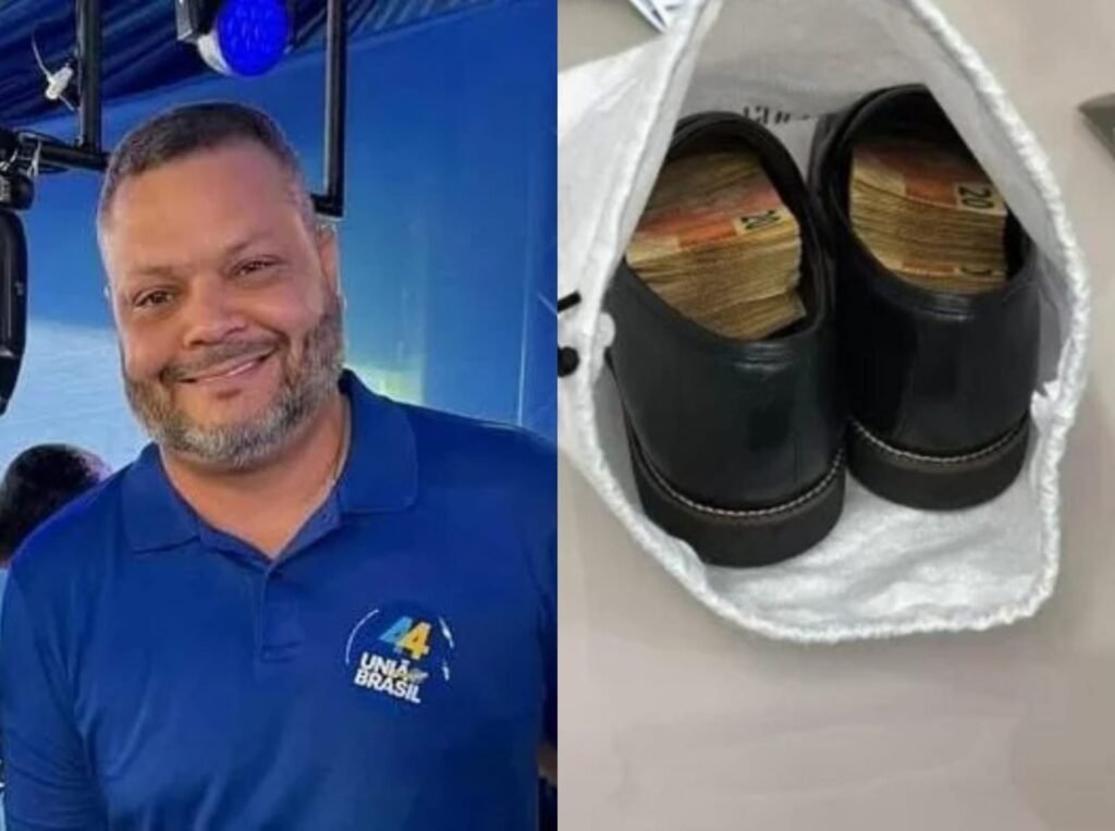 Cumprindo um mandato de busca e apreensão no município, a PF encontrou diversos maços de dinheiro escondidos em um par de sapatos na casa do político. O valor ainda não foi divulgado.