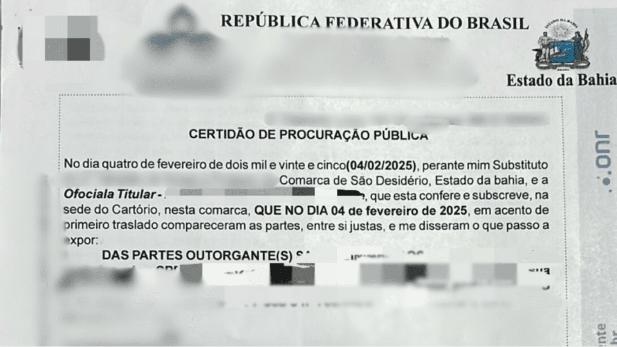 Em diligências preliminares, a equipe verificou que o documento continha um QR Code incompatível com as informações do selo de fiscalização do Tribunal de Justiça da Bahia, o que corrobora a falsidade. Adicionalmente, os policiais entraram em contato com o legítimo proprietário do imóvel, que negou categoricamente ter concedido qualquer procuração autorizando a transferência do bem.