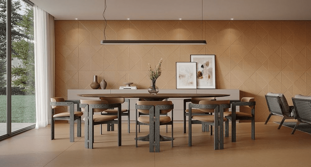 Esse processo de retificação permite a instalação com juntas mínimas (de 1 a 2mm), diferente do porcelanato comum que exige espaçamentos maiores. Com bordas regulares, o porcelanato retificado evita rebarbas e recuos de esmalte, criando superfície limpa e homogênea.