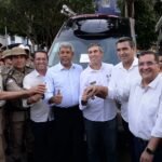 Durante a tarde, o governador entregou 23 novas viaturas à Polícia Militar da Bahia, por meio da Secretaria da Segurança Pública (SSP), em cerimônia que contou com a presença do secretário Marcelo Werner e do comandante-geral da PMBA, coronel Antônio Carlos Magalhães. A nova frota — composta por 15 motocicletas, seis caminhonetes Hilux e duas bases móveis — beneficiará diretamente os municípios de Barreiras, Luís Eduardo Magalhães, Ibotirama, Formosa do Rio Preto, Bom Jesus da Lapa, Macaúbas, Santa Maria da Vitória e Riachão das Neves.