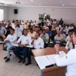 O prefeito conduziu a Assembleia ao lado do presidente da Aiba, Moisés Schmidt, e do prefeito de Santa Rita de Cássia, Zezo Aragão, que também preside o Consid. Em seu discurso, Otoniel Teixeira destacou a importância dos investimentos e reforçou as parcerias com o setor agropecuário.