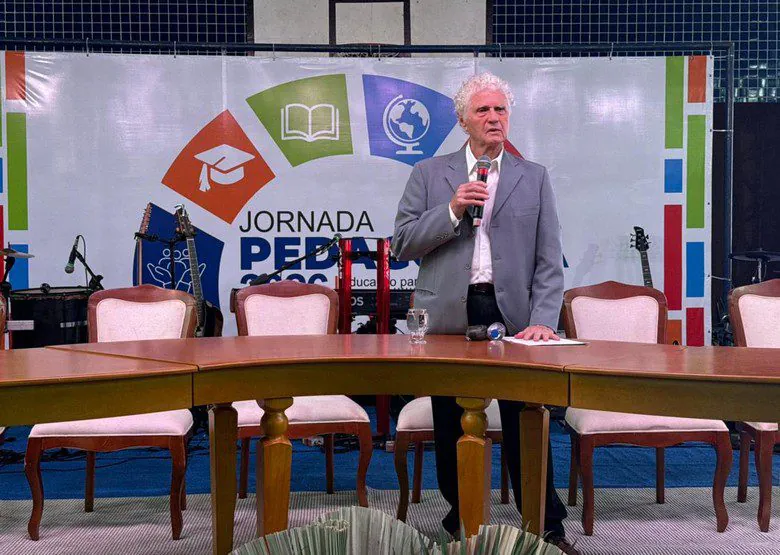 Com o tema “Educação para a Equidade: estratégias e práticas plurais nas escolas”, a palestra foi ministrada pelo professor Dr. Cipriano Carlos Luckesi, referência nacional na área educacional, que trouxe reflexões voltadas à formação continuada dos profissionais da educação, considerando as diferentes realidades da rede municipal e a garantia do direito à aprendizagem de todos os estudantes.