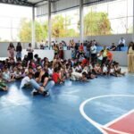 Ao lado de servidores, equipe pedagógica e autoridades, o prefeito Otoniel Teixeira ressaltou a emoção de entregar mais uma obra que valoriza a educação municipal, destacando que com a requalificação da quadra, a Escola Municipal Paulo Freire amplia suas possibilidades de uso do espaço, fortalece práticas pedagógicas e esportivas e contribui para a formação integral dos estudantes.