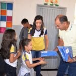 Produzidos em 100% algodão, os agasalhos serão entregues até quinta-feira (7) a crianças e adolescentes da Educação Infantil ao 9º ano, totalizando uma média de 3.856 peças. O prefeito Otoniel Teixeira participou do primeiro dia de entregas ao lado da primeira-dama Chaliny Matutino, do secretário de Educação Jeferson Barbosa e da subsecretária Edleuza Matutino, acompanhados por representantes do Núcleo Mulheres do Agro.