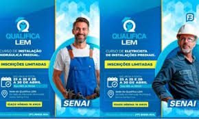 A Prefeitura de Luís Eduardo Magalhães anuncia a abertura das inscrições para os cursos gratuitos de Eletricista de Instalações Prediais e Instalação Hidráulica Predial . As inscrições seguem até o dia 30 de abril ou enquanto houver vagas. A iniciativa faz parte do Programa Qualifica LEM, uma parceria entre a Secretaria Municipal de Desenvolvimento Econômico e o Senai.