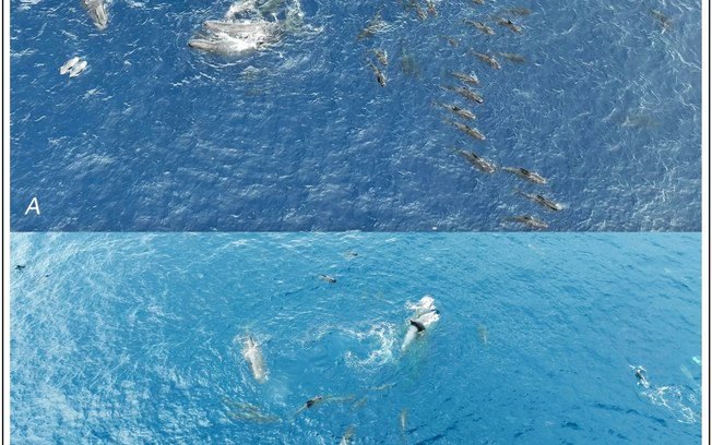 A observação foi feita por uma equipe do Projeto Ceti, iniciativa internacional dedicada a estudar a comunicação entre baleias. Os pesquisadores estavam em um barco próximo a um grupo de 11 animais, na costa da ilha caribenha de Dominica, em 8 de julho de 2023.