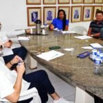 Nesta quarta-feira (12), foi realizada mais uma reunião de alinhamento na Prefeitura, com a presença do secretário de Cultura e Turismo, Gulla; secretária de Administração, Gislaine Barbosa; Controladora Geral, Versiany Moreira e o subsecretário de Planejamento, Aldir Resmini; também a coordenadora de Contratos, Rairane Lessa; agente de Contratação, André Avelino; assessores André Vasco e José Carlos Amâncio e o procurador adjunto, Vinícius Vivas.