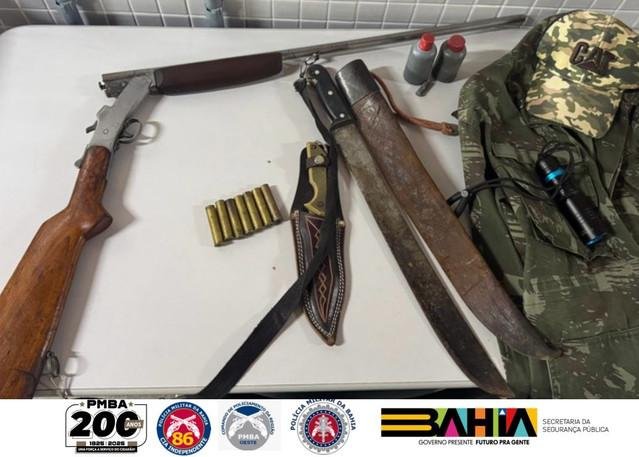 Na manhã desta terça-feira, 1, por volta das 11h, a 86ª CIPM apreende arma de fogo e materiais voltados à prática de crimes ambientais, na BA 451, em Santa Rita de Cássia.