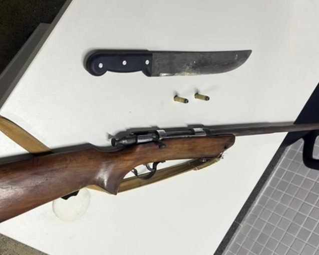 Ao tentar intimidar a vítima, houve luta corporal, ocasião em que o autor foi desarmado e contido. Os policiais militares, localizaram o suspeito, a espingarda calibre .38 e duas munições correspondentes.