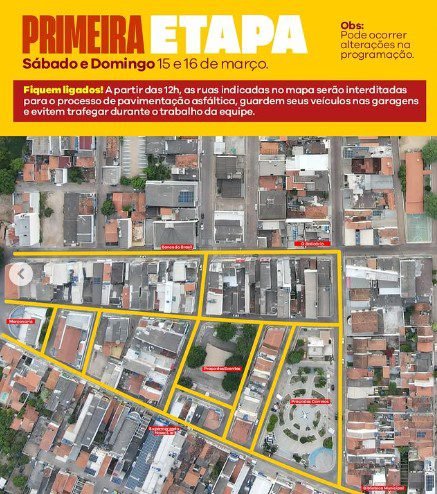 A prefeitura, por meio das redes sociais, divulgou o cronograma da pavimentação no centro da cidade. De acordo com a nota, “a primeira etapa será iniciada na loja maçônica com destino a biblioteca municipal e finaliza na rua dos bancos e todas suas travessas.”