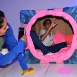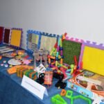 Outro destaque é a “Massinha Sensorial”, que amplia a experiência tátil por meio de uma composição feita com EVA, condicionador e maisena, proporcionando estímulos sensoriais importantes no processo de aprendizagem. Já o painel sensorial chama a atenção dos visitantes ao oferecer um circuito interativo com piso tátil confeccionado com plástico bolha, além de estímulos visuais, sonoros e olfativos, com música ambiente, espaço perfumado, figuras animadas de animais e atividades que permitem a interação, como a troca de roupas de personagens.
