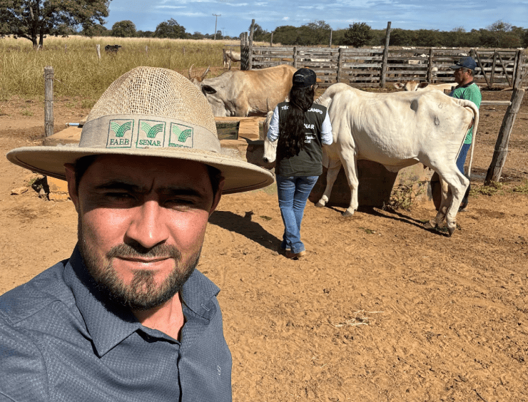 Nesta Quarta-feira, 5 de junho a propriedade Sucesso Agropecuária, do produtor Romário, e a Fazenda Gama, pertencente ao seu pai, receberam a visita técnica da veterinária Maria, representante do Serviço Nacional de Aprendizagem Rural (Senar).