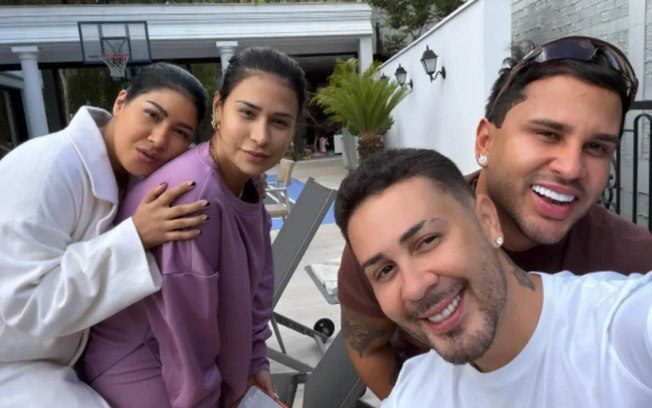 A imagem foi feita durante um encontro na área externa de uma mansão de luxo. Carlinhos compartilhou o momento com a legenda: “Amo vocês, minha família”.