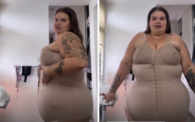 A influenciadora Thais Carla compartilhou com os seguidores, nesta terça-feira (5), a solução que encontrou para lidar com o excesso de pele após perder mais de 50 kg com a cirurgia bariátrica.