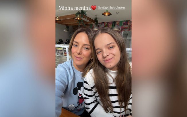Além do momento fofo com Manu, Ticiane também publicou uma selfie com a filha mais velha, Rafaella Justus, de 15 anos, fruto de seu relacionamento anterior com o empresário Roberto Justus.