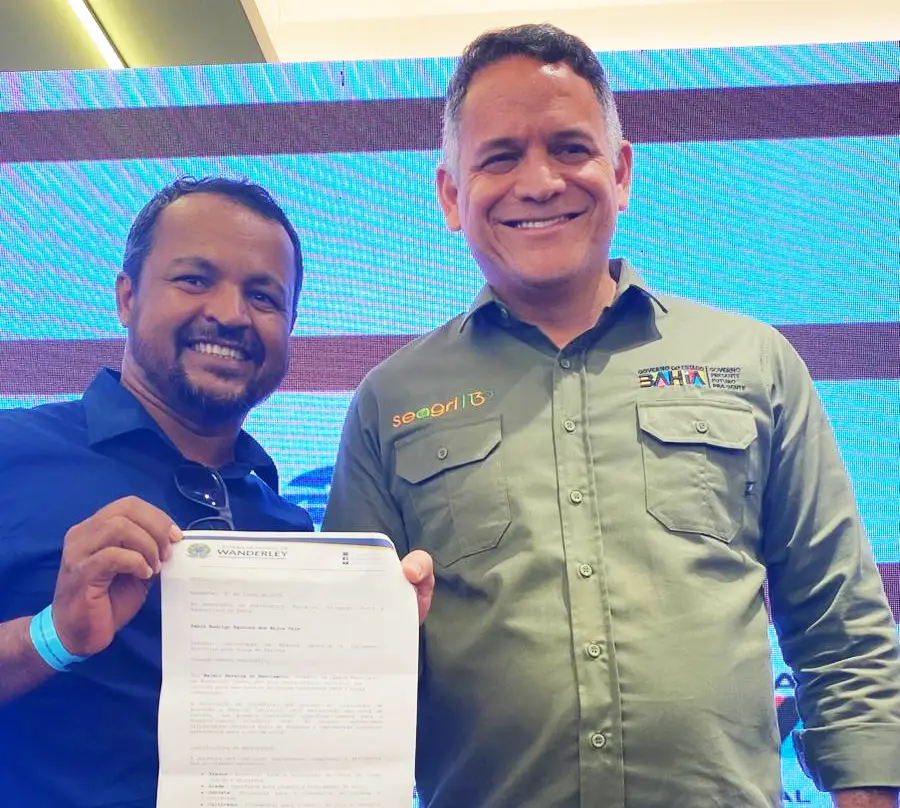 Durante o evento Bahia Farm Show, realizado nesta terça-feira, 10 de junho de 2025, o vereador Walmir Pereira do Nascimento, da Câmara Municipal de Wanderley, fez uma solicitação importante ao secretário de Agricultura, Pecuária, Irrigação, Pesca e Aquicultura da Bahia, Pablo Rodrigo Barrozo dos Anjos Vale. O pedido visa o apoio para a Associação de Goiabeira, que está implantando uma usina de farinha nas localidades de Barrocão e Boca do Tabuleiro.