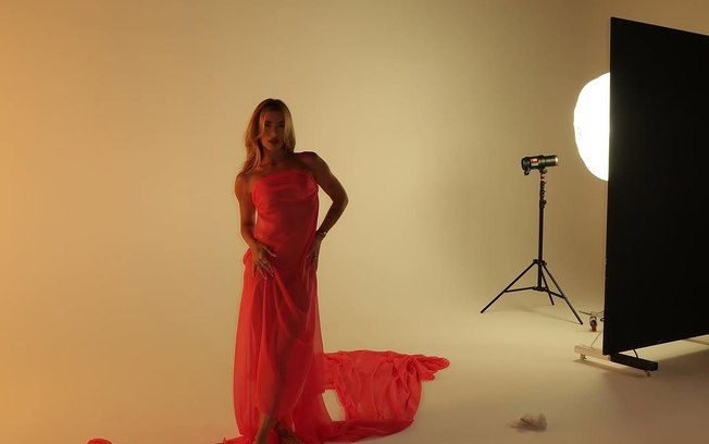 Em um carrossel de fotos compartilhado no Instagram, a mãe de Maria Flor, Maria Alice e José Leonardo mostrou os bastidores do photoshoot da campanha. Nas fotos, é possível ver que Virgínia optou por usar um tecido transparente rosa, que deixa a pele do corpo exposta.
