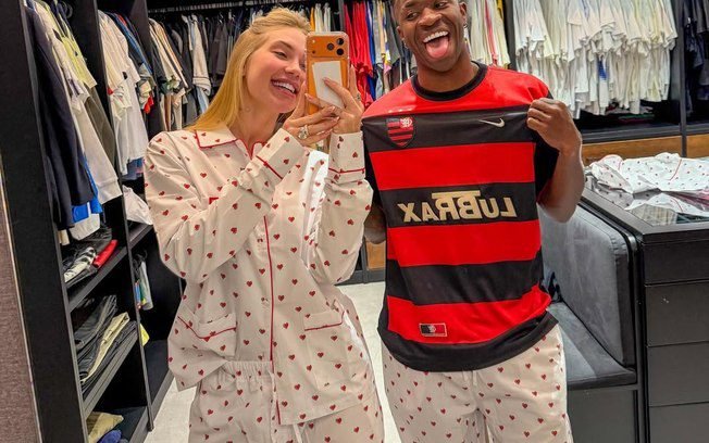 Seguidores da loira também deram suas opiniões sobre o look escolhido pelo casal. “Casal breguinha? Temos KKKKK não aguento com vocês não”, escreveu uma. “Já sabe amiga, o próximo pijama tem que ter coraçõezinhos com o brasão do flamengo”, sugeriu outra. “Da próxima queremos Vini com uma blusa personalizada com seu rosto, Vivi”, pediu outro.