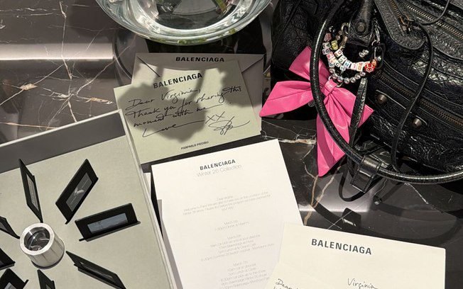 Além das mensagens, a influenciadora também mostrou os mimos enviados pela Balenciaga, incluindo uma bolsa preta da marca, modelo Neio Cagole XS Handbag, que custa entre R$ 7 mil e mais de R$10 mil, dependendo da versão.