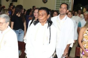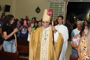 A missa contou com a presença ilustre de Dom Moacir, que trouxe uma mensagem de fé e união para todos os presentes. A participação da comunidade foi calorosa, refletindo a importância da festividade para os moradores da região.