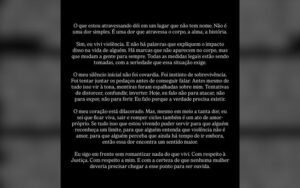 Médica e influenciadora denuncia cantor por agressãoInstagram/@draraphabrilhante A médica Raphaella Brilhante se manifestou publicamente após registrar denúncia de violência doméstica contra o então marido, o cantor João Lima, na Delegacia da Mulher de